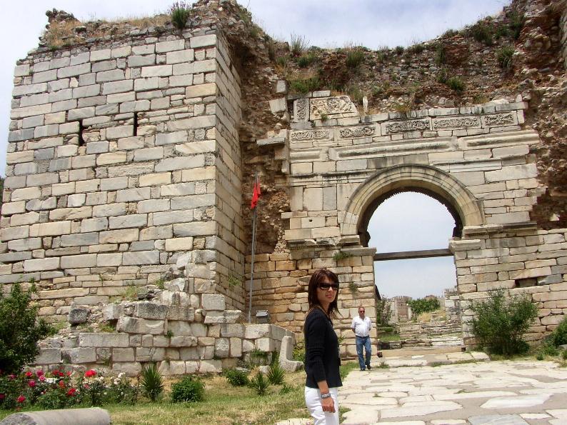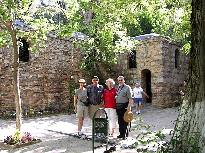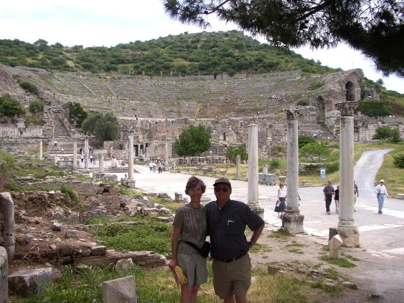 9 May 2005 - Depart Venice, Italy Sunset at sea south of Venice 10 May 2005 - Dubrovnik, Croatia Dubovnik is an ancient city, formerly known as Ragusa, situated on the southern tip of Croatia. It was probably founded in the seventh century AD. It originally was part of the Byzantine Empire but later came under the control of Venice. It existed as a free state from the mid-1300s until after the Napoleonic wars when it was annexed by Austria-Hungary. It later bacame a republic within the Yugoslav Federation. Croatia declared ts independence in 1991 and Dubrovnik was attacked by Serbian forces who occupied the territory around Dubrovnik and bombarded the city for eight months. Pile Gate, west entrance to Old City Dubrovnik Fort Lovrijnec Old City Dubrovnik from the city walls Phil on city walls near the Old Harbor 12 May 2005 -Santorini, Cyclades Islands, Greece Santorini was inhabited as early as 3500BC. Akrotiri was a Minoan city on the southern coast of the island that had a very advanced civilization (recent speculation is that it might be the lost city of Atlantis that Plato wrote about). The island was volcanic and it erupted in the 16th century BC, blowing the island apart. The eruption caused a tremendous tidal wave which swept other islands including Crete. The island was again settled by Phoenicians around 1300 BC. The islands were later under Byzantine control, then Venetian. The Ottomans took control in the late 16th Century AD. The islands became part of Greece after the Greek Revolt in 1821. Today three islands are remnants of the original one island, Thira, Therasia, and Aspronisi. Thira is the largest island and is the one we visited. Fira Town Phil at Catholic Church in Fira Excavations at Akrotiri (destroyed by volcano in the 16th Century BC) 13 May 2005 - Kusadasi, Turkey Kusadasi is a seaport about 150 km. south of Izmir (ancient Smyrna). It is the gateway to the ancient city of Ephesus. According to the old legends, Ephesus was founded by the female warriors known as Amazons. Ephesus was inhabited from the end of the Bronze Age. Again from legends, the city was founded for the second time by Androculas, the son of Codrus, king of Athens. Under the rule of the Lydian kings, Ephesus became one of the wealthiest cities in the Mediterranean world. The defeat of Lydian King Croesus by the Persian king Cyrus brought the city under Persian control. Alexander the Great broke the Persian yoke in 334 BC. In 129 BC, Romans took control of the area. At this time, Ephesus had a population of 200,000. In the first century BC, heavy taxation imposed by the Romans led to a revolt. In 88 BC, the Latin-speaking inhabitants were massacred leading to the the city being stormed and sacked by a Roman city under Sulla. The buildings we saw were constructed during the reign of Augustus. The city was severely damaged by an earthquake in 17 AD. St. Mark preached in Ephesus in 55 and 56 AD. St. John the Evangelist moved to Ephesus around 60 AD and died around 100 AD. He is buried in Selçuk, near Ephesus. His tomb was in a huge basilica that was built by Emperor Justinian that was destroyed. Only the ruins and the tomb remain. Legend has it that the Blessed Virgin Mary moved here under John's care around 60 AD. John built a house for her on Mount Bulbul near Ephesus. Mary lived here until her assumption into heaven around 64 AD. Celsus Library and Mitharades Gate, Ephesus Marilyn and Phil at the Great Theater where St. Paul preached in Ephesus Ruins of Church of St. John where St. John the Evangelist is entombed near Ephesus with our guide, Ceylan Dedeoglu Marilyn and Phil and Helen and John Ramsaur at the home of the Virgin Mary built by St. John near Ephesus 14 May 2005 - Rhodes, Dodecanese Islands, Greece Rhodes was settled by the Mycenaneans about 1500 BC. The Persians conquered and occupied most of the island in 491 BC. After the naval Battle of Salamis and the defeat of the Persians, the island became part of the Delian League in 480 BC. Rhodes came under Macedonian domination under Alexander the Great. After a long siege, Rhodes regained her independence in 305 BC. One of the seven wonders of the ancient world, the Colossus of Rhodes, was erected at the harbor entrance in 293 AD. The Colossus was destroyed by an earthquake in 227 BC. In 70 AD, Romans took control of Rhodes and held her until the 3nd century AD after which the Byzantines controlled Rhodes. Later it was occupied by the Persian, the Turks, and the Saracens. Later the Genoese and the Venetians took control. The Knights of St. John fortified the island but were finally ousted by the Ottomans in 1523 AD after a long siege. The Italians took over in 1912 and held the island until 1943. The British controlled the island after World War II until 1948,when Rhodes was reunited with Greece. St. Nicholas Fortress at entrance to Rhodes - near site of the Colussus of Rhodes, one on the Seven Wonders of the Ancient World View of Rhodes from the Palace of the Grand Masters Marilyn and friend at the Palace of the Grand Masters 16 May 2005 - Pireaus/Athens, Greece Athens was one of the small city-states in ancient Greece. Solon established a democracy where all classes except slaves were invested with the vote. Starting in 490 BC, the Persians invaded Greece two times, defeated the first time on land and the second time on the sea. Pericles in the 5th century BC built the Parthenon, the Propylea, the Long Walls of Piraeus, and many of the Temples in Athens. Athens was defeated by Sparta in 404 BC after a 27 year war. Thirty years later, Macedonia unified Greece. In 146 BC, the Romans took control of Greece. After the Empire was split, Greece was under Byzantine control. After the fall of Byzantium, Athens came under Turk control until 1821 when the Greeks revolted. Greek independence was finally achieved in 1829. The Parthenon served as a Athenian temple, Christian church, a Moslem mosque, and finally a Turkish gunpowder magazine. Venetian g