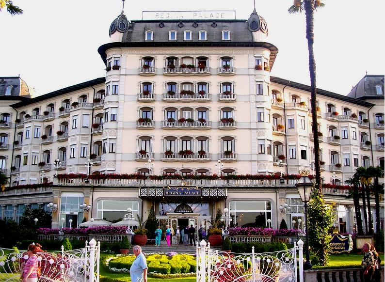 The Regina Palace, our hotel in Stresa Stresa night street scene Marilyn with Isola Madre in Lago Maggiore in the background